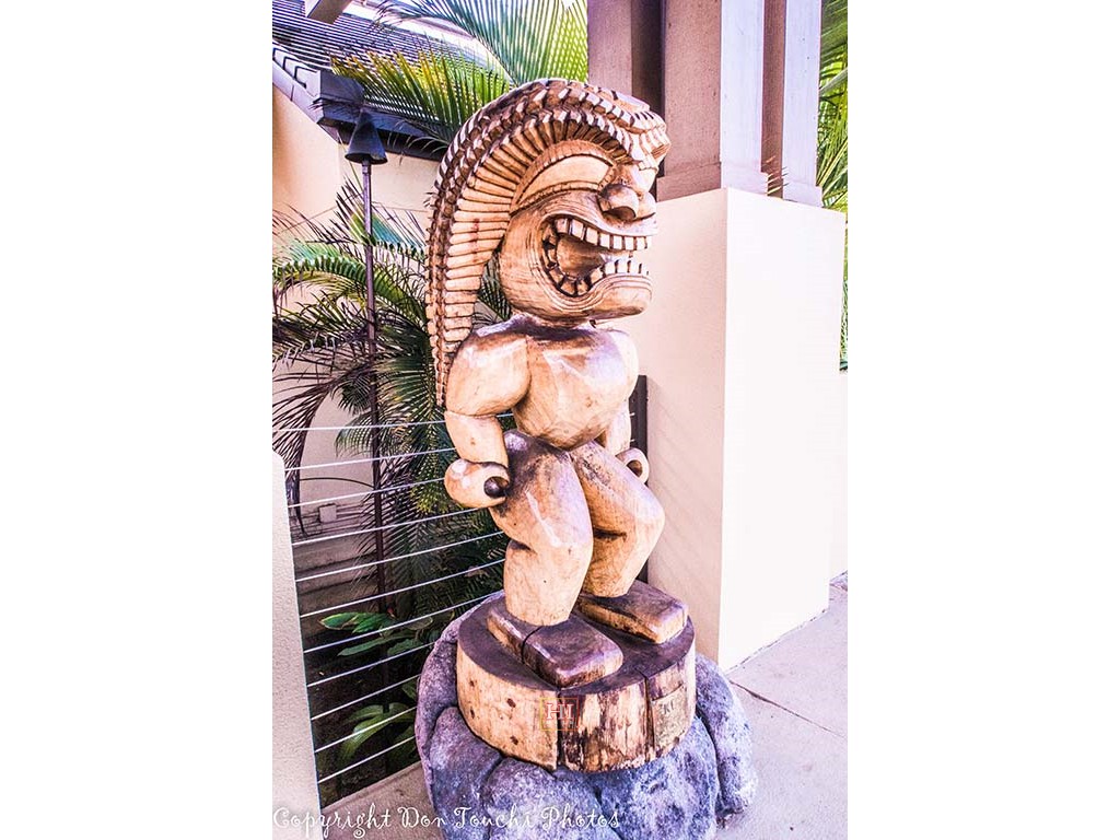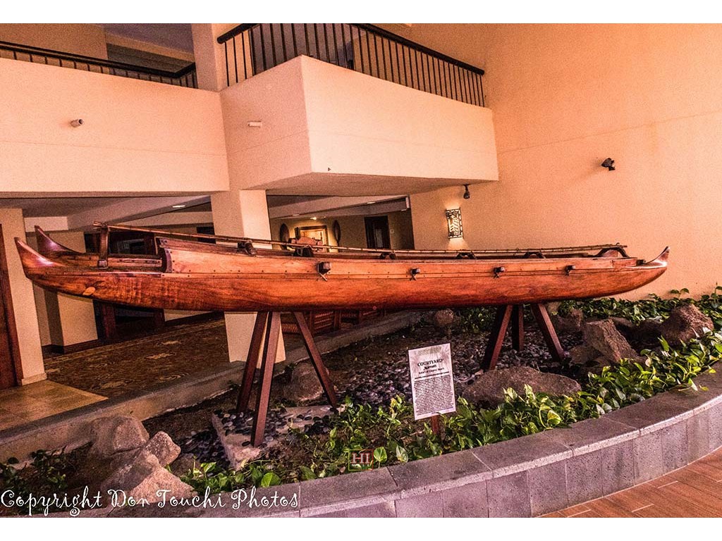 • A canoe graces the lobby of the Courtyard by Marriott at Coconut Beach.
