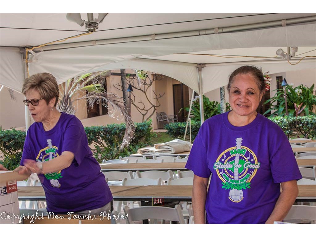 • The festival staff planning the dayʻs eating activities. Photo by Addison Ching.