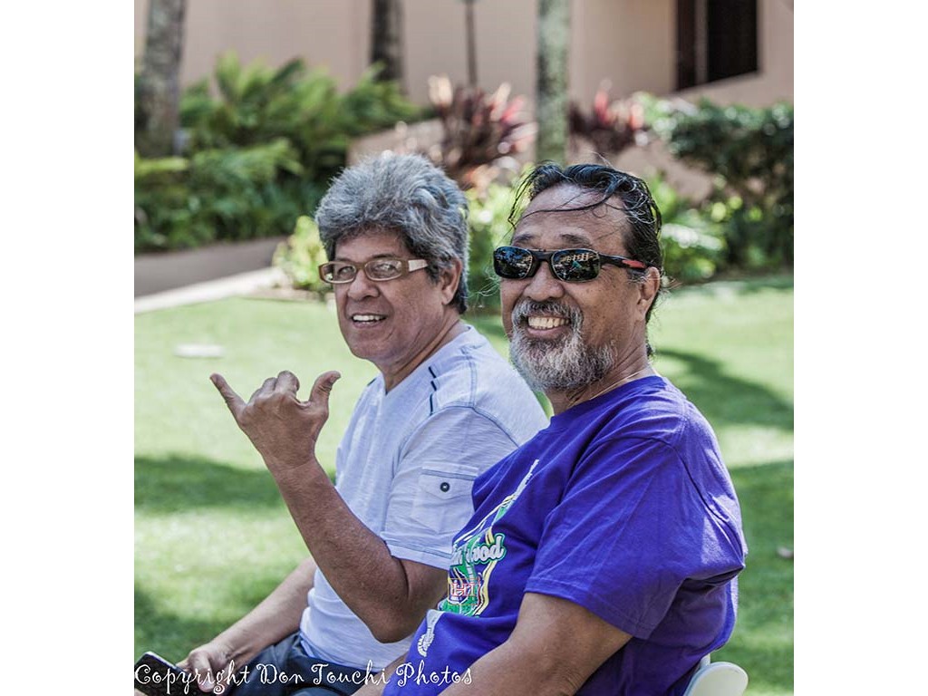 • From left: Greg Sardinha, Alan Akaka, Kilipaki Vaughan, Bobby Ingano, Geronimo Valdriz, Addison Ching, Ed Punua, and Eddie Palama.