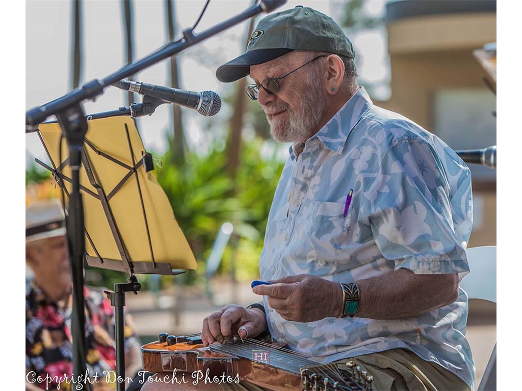 Steel guitarist Larry Holu backed by the Ke Kula Mele Enesmble: Mālie Lyman, Gale Warshawshy, Shirley Holu, Addison Ching, Alexis Tolentino, and Alan Akaka.