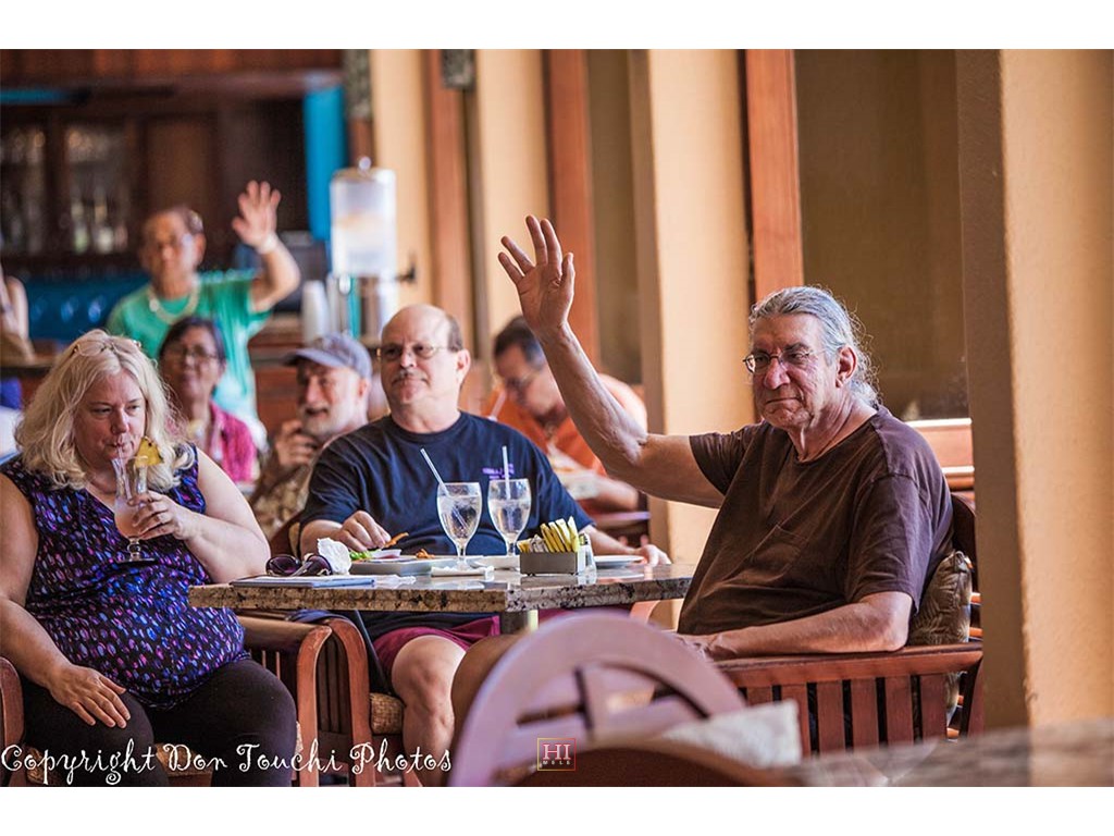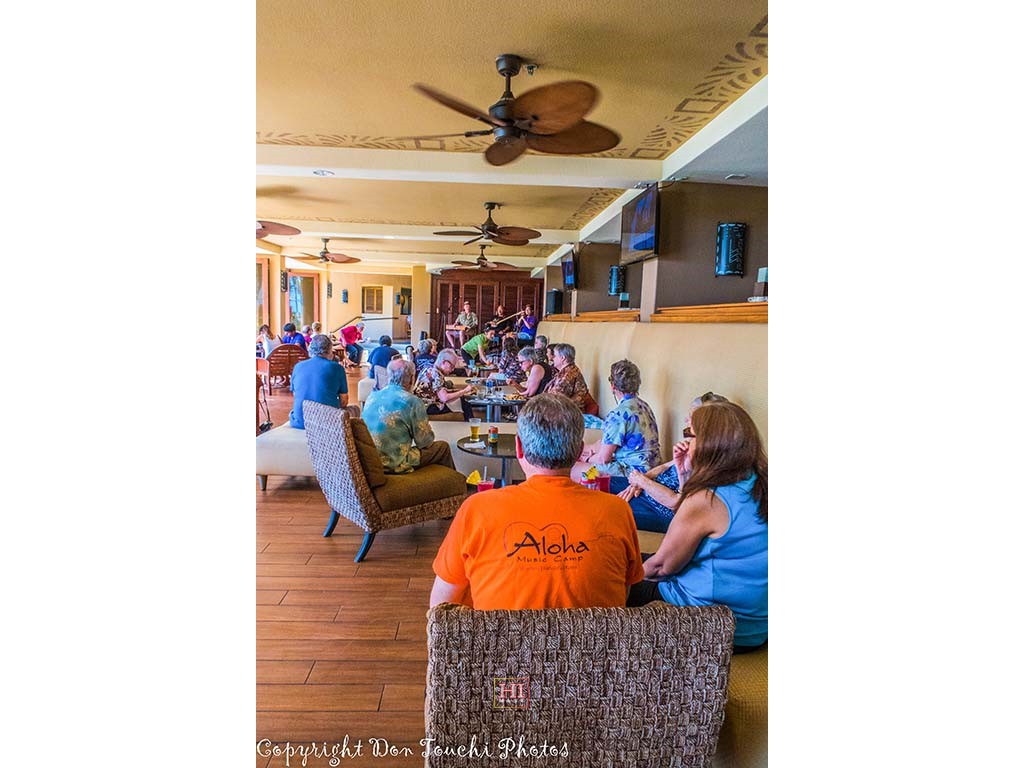 Friday Open Stage performances were held indoors in the Makai Lounge and featured steel guitarists and musicians of the Ke Kula Mele Hawai‘i School of Hawaiian Music and some Aloha Music Camp musicians.