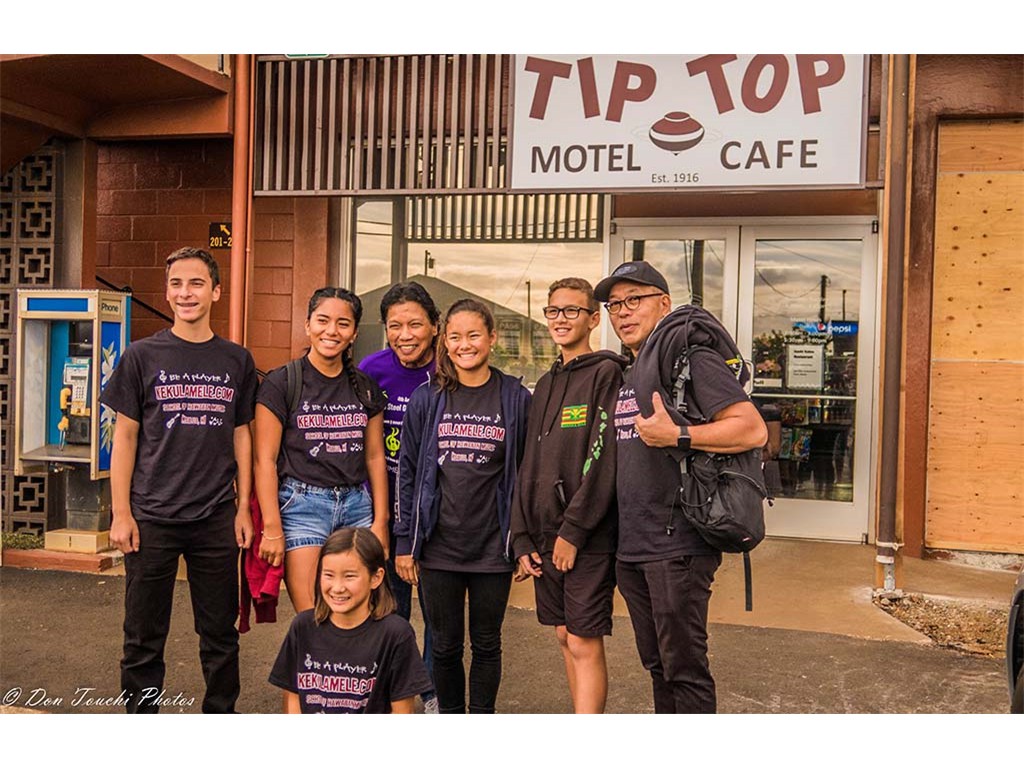 Breakfast after Friday's school visitation was at Tip Top Cafe. From left: Ethan Goore, Mālie Lyman, Tai Misailidis, Bobby Ingano, Joey Misailidis, Pono Fernandez, and Alan Akaka.