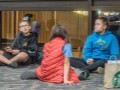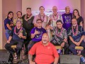 Some members of the Kauaʻi Steel Guitar Festival class of 2019. Front: Greg Sardinha, Alan Akaka, Larry Holu, Bolbby Ingano, Geri Valdriz. Rear: Mālie Lyman, Kekai Chock, Kaipo Asing, Kapono Lopes, Dave ʻʻDKʻʻ Kolars, Addison Ching, Pomaikaʻi Lyman.