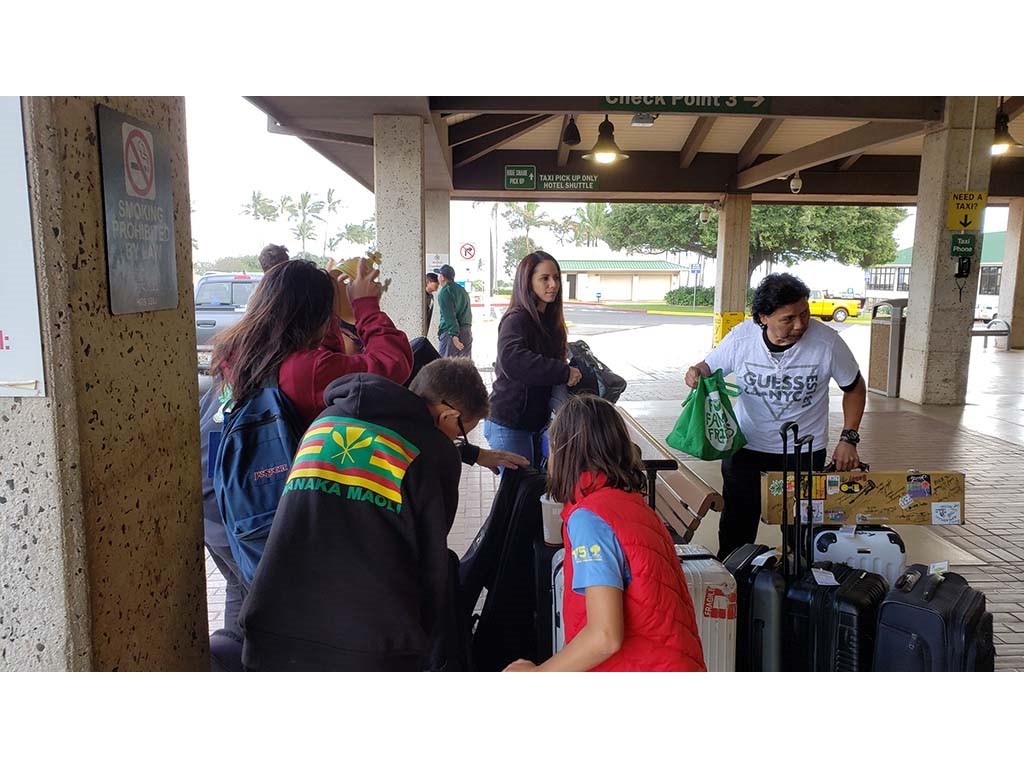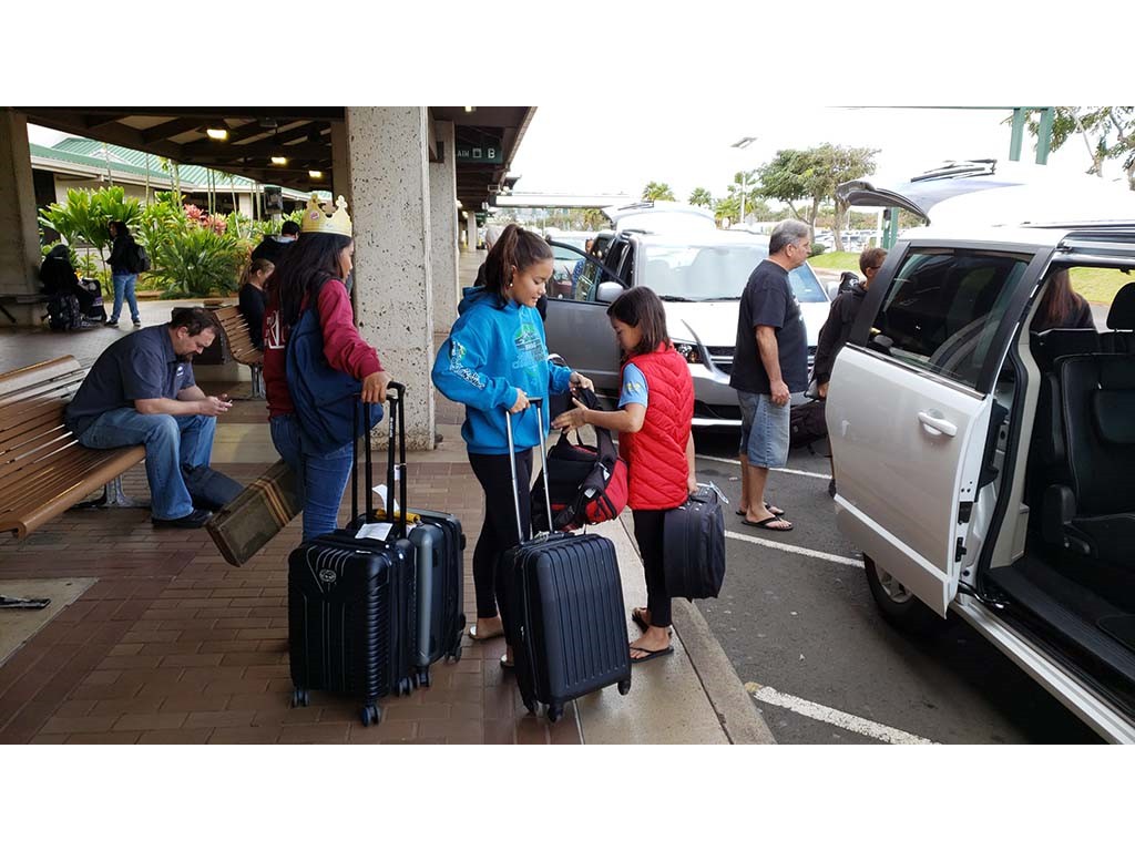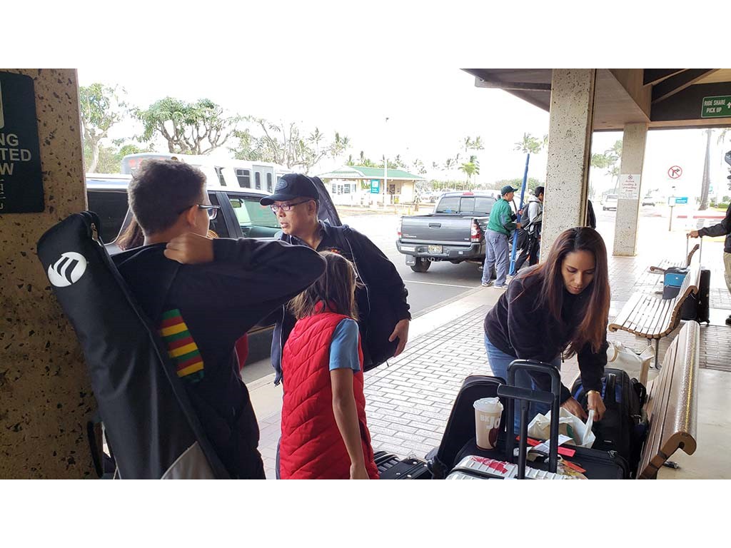 Arriving in Lihue, the NextGen gather their instruments and luggage, assisted by their parents.