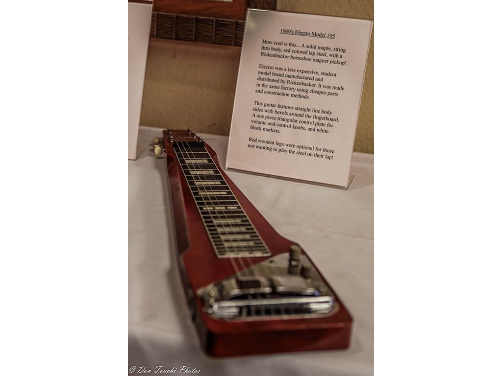 Steel guitars from the collections of Kaua'i steel guitarists Marty Curnan and Michael Soong and guitars from the collection of Geri Valdriz were on display for festival guests.