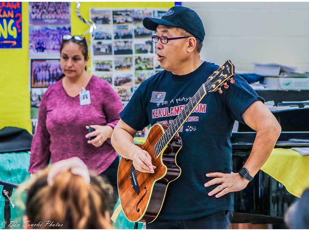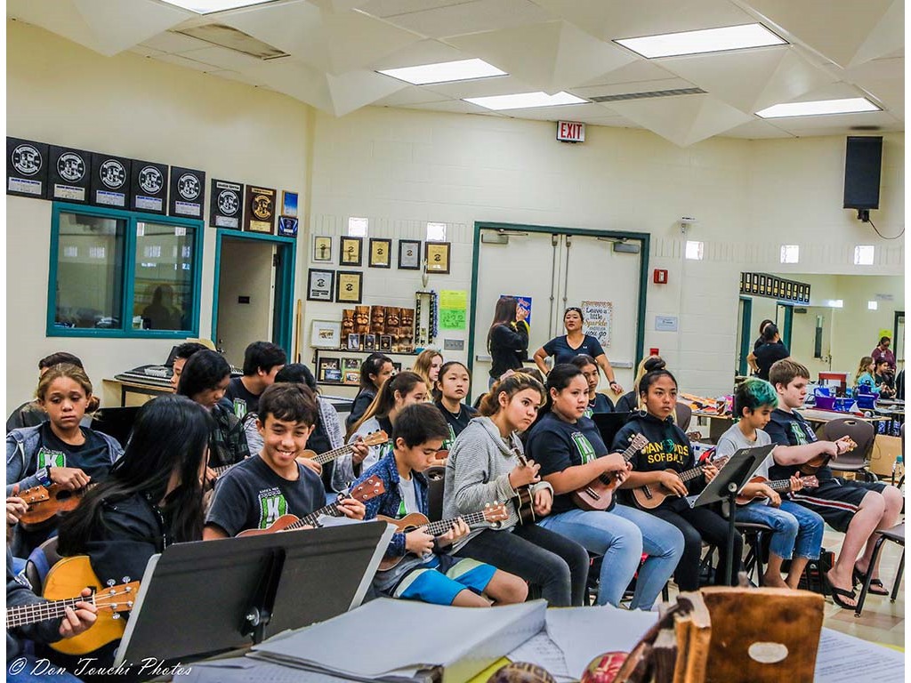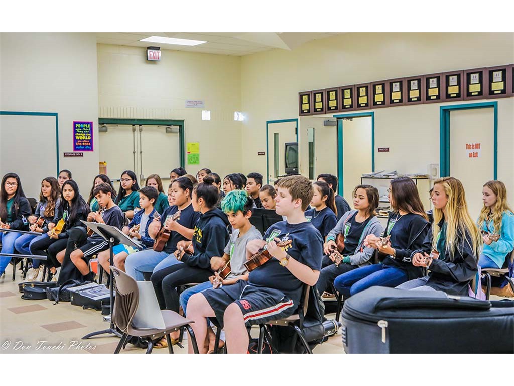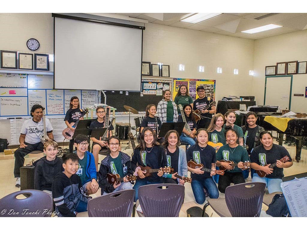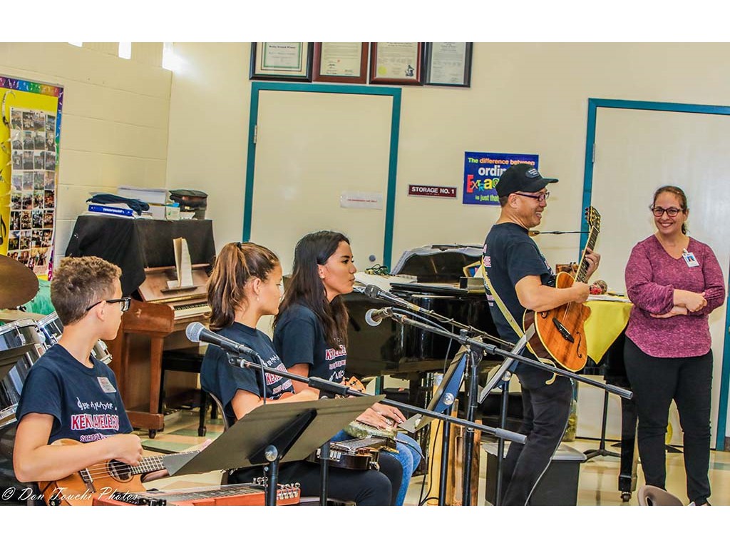 The class, members of the Kapaʻa Middle School Chorus and ʻUkulele Band, was invited to play along kanikapila style.