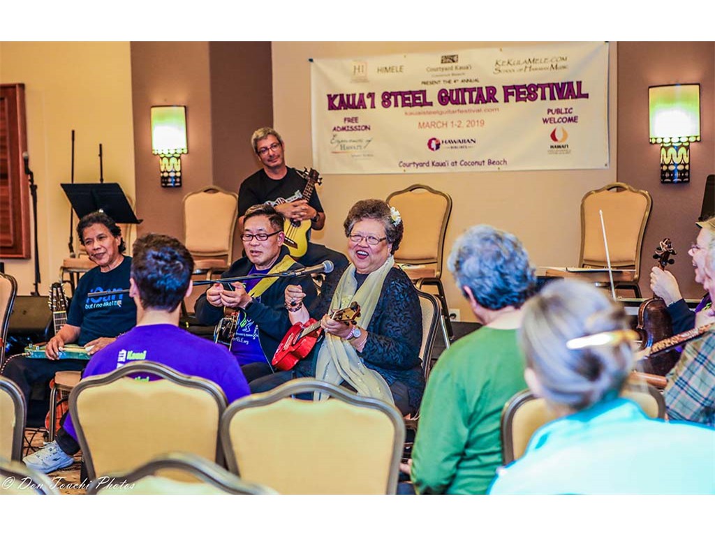 Public kanikapila jam sessions were held Friday and Saturday evenings beginning at 8:30 in the hotel's Paddle Room. Participants included featured and NextGen steel guitarists, other festival artists and musicians, Aloha Music Camp participants, community artists and musicians, and other guests.
