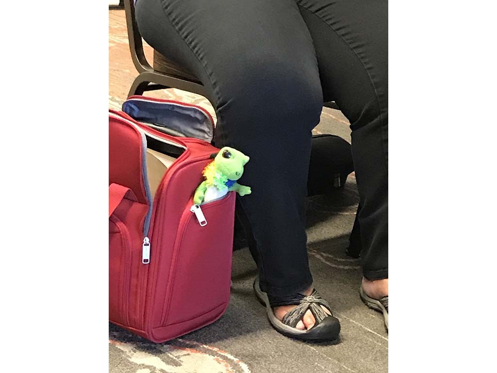 • Good luck mascot ʻʻYamaʻʻ accompanies Rhonda Murotake. Photo by Gale Warshawsky.