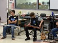 Ethan shows the students how to place the finger picks. Photo by Natan Goore.