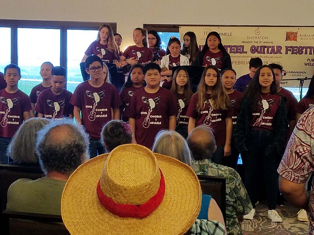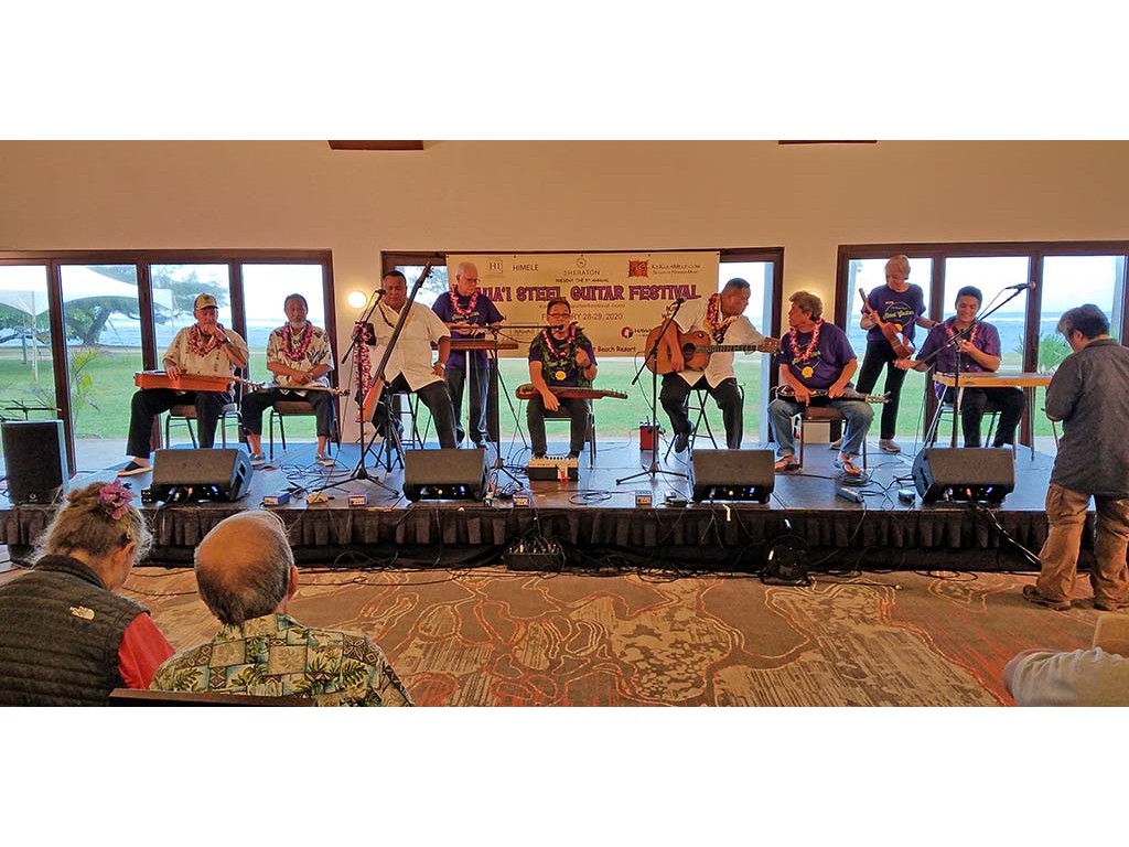 Saturday's Ho‘olaule‘a featured six steel guitarists and the Chieffess Kamakahelei Middle School Chorus and ‘Ukulele Band and Kapa‘a Middle School Choir and ‘Ukulele Band performing with NextGen steel guitarists. The Ho‘olaule‘a concluded with a finale featuring all steel guitarists playing at the same time.