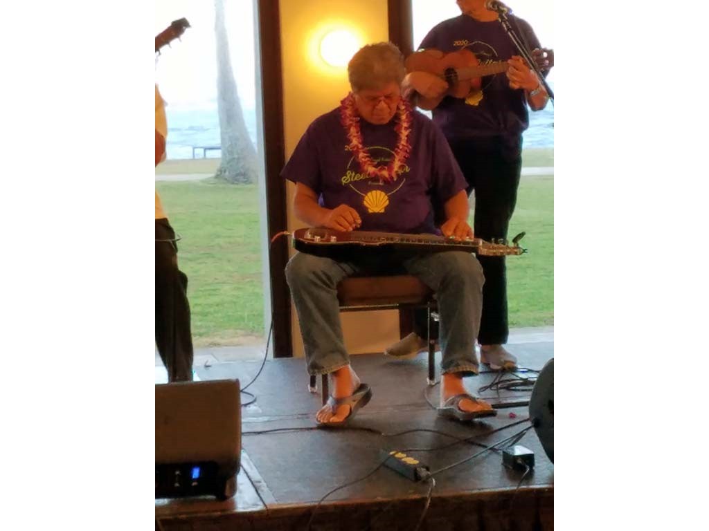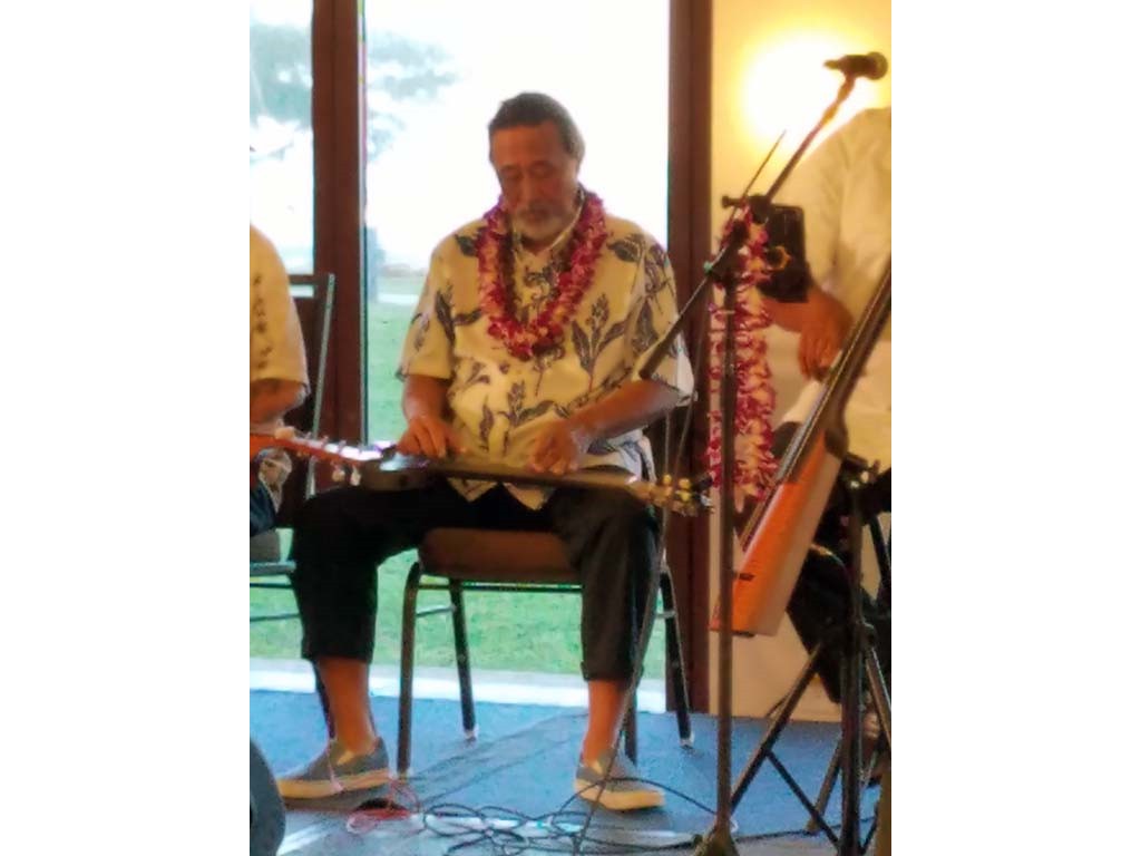 Featured steel guitarist Steve Cheney with Adam Asing, Kapono Lopes, and Kaipo Asing.