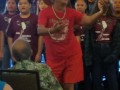 Chiefess Kamakahelei Middle School Chorus and 'Ukulele Band director Elias Gonzales gives last-minute instructions to the group before their performance.
