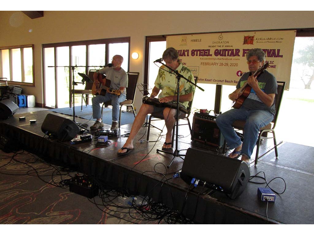 Aunty Manu Lono, Mark Gaponoff, and Greg Sardinha. Mark also played his fiddle. Photo by Kris Oka.