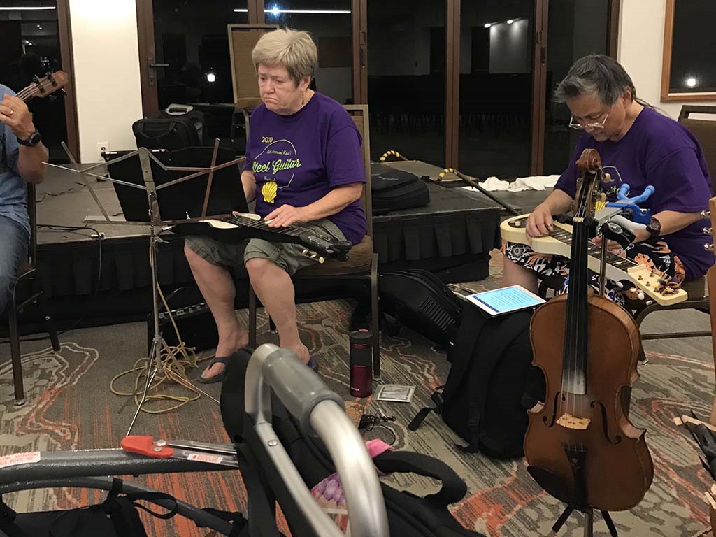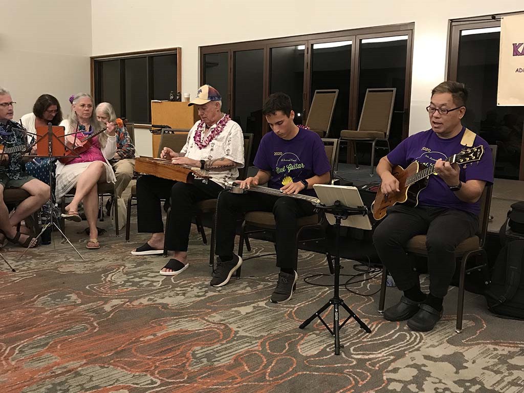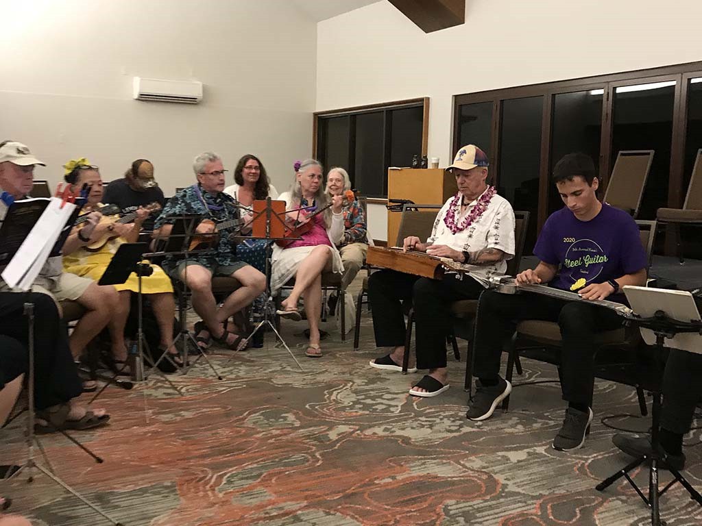 Many AMC participants joined Saturday's kanikapila with Dave ''DK'' Kolars and Ethan Goore on the steel guitar.