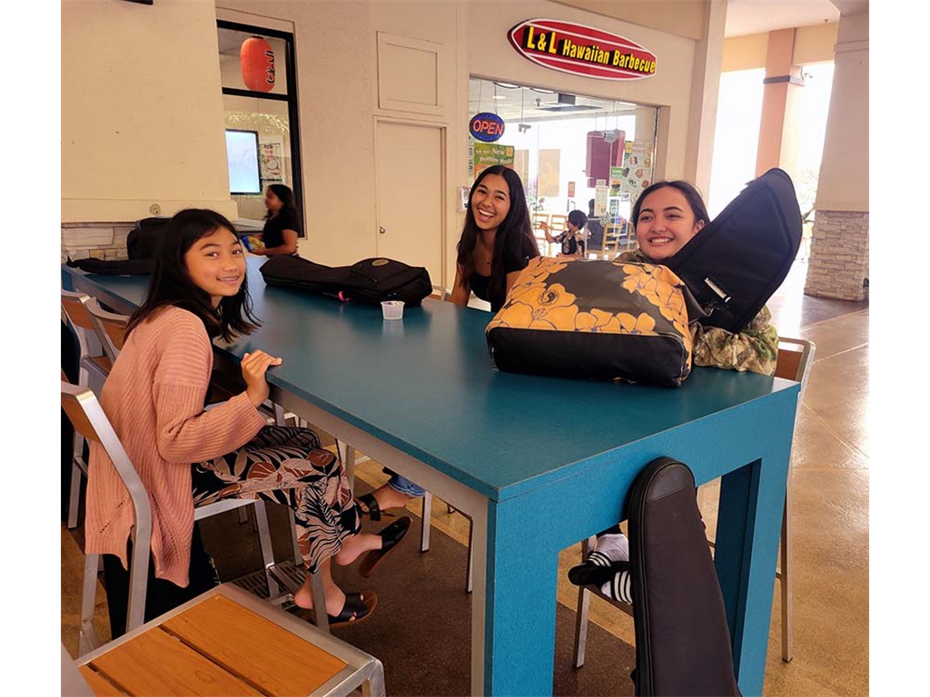Hiʻipoi, Isabella, and Makamae are getting fueled up for their performance.
