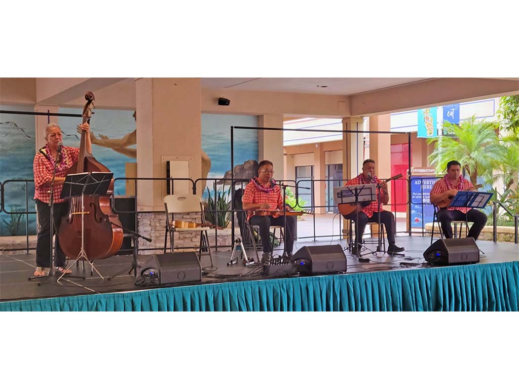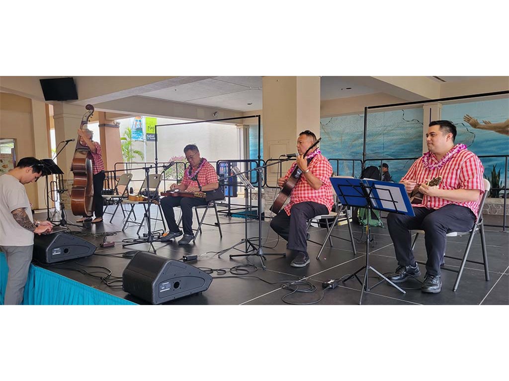 Kukui Grove Center sound check with Helene Woodward, Alan Akaka, Kaipo Asing, and Kaipo Lindsey.