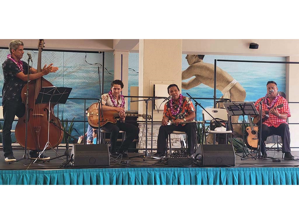 Featured steel guitarist Alan Akaka with Helene Woodward, Kaipo Asing, and Kaipo Lindsey.