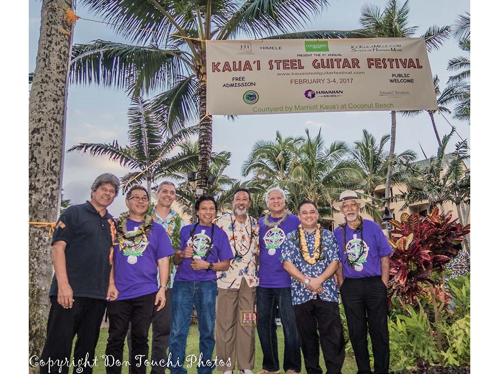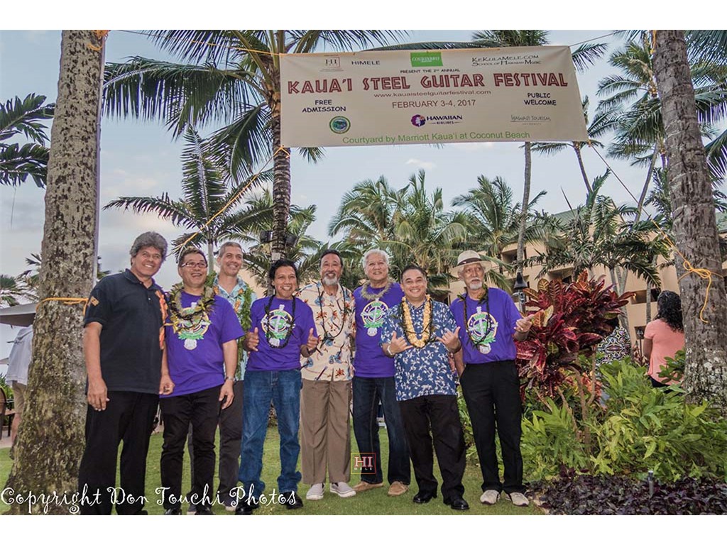 • From left: Greg Sardinha, Alan Akaka, Kilipaki Vaughan, Bobby Ingano, Geronimo Valdriz, Addison Ching, Ed Punua, and Eddie Palama.