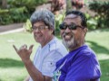 • The festival staff planning the dayʻs eating activities. Photo by Addison Ching.