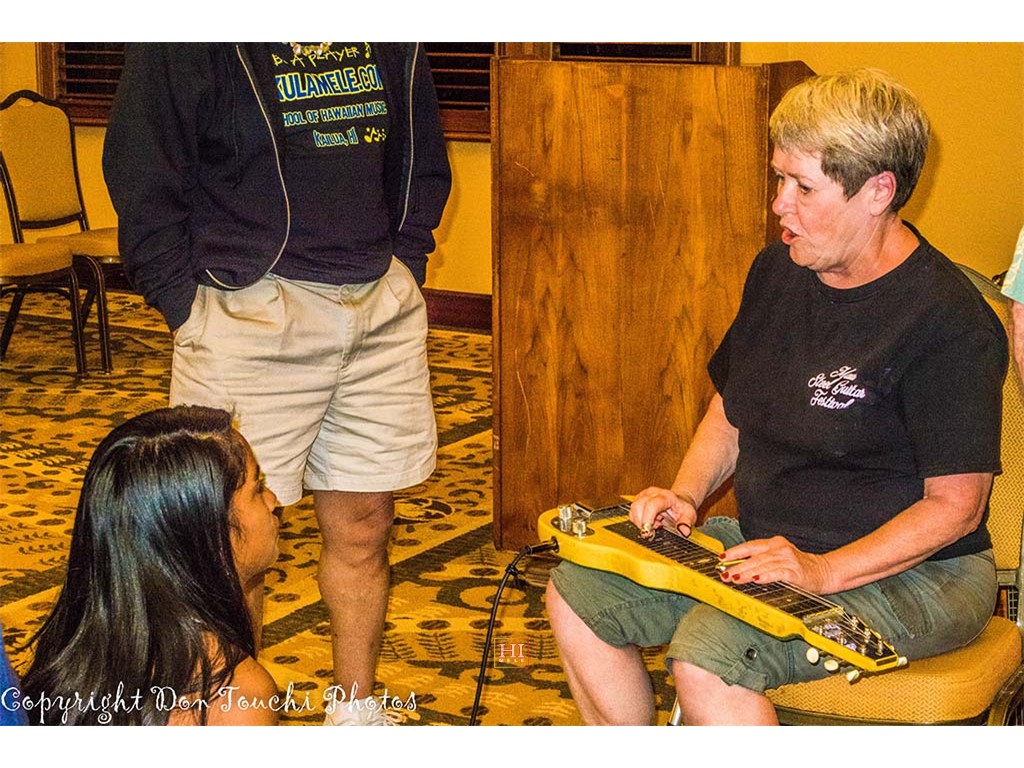 Next generation steel guitarist Mālie Lyman was on hand for playing demonstrations.