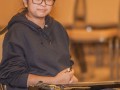 Vickie Van Fechtmann engages Malie Lyman in a playing technique discussion.