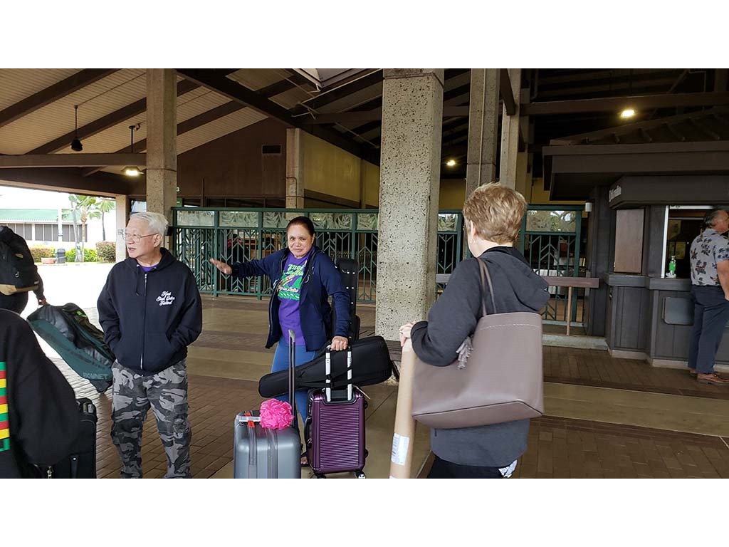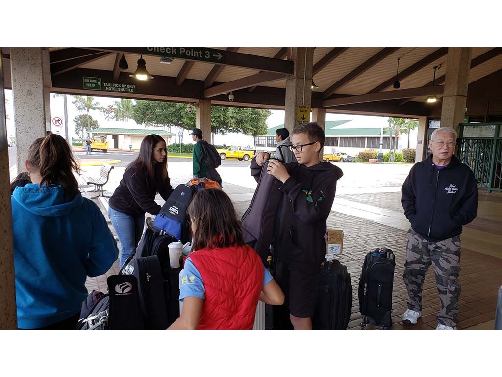 Arriving in Lihue, the NextGen gather their instruments and luggage, assisted by their parents.