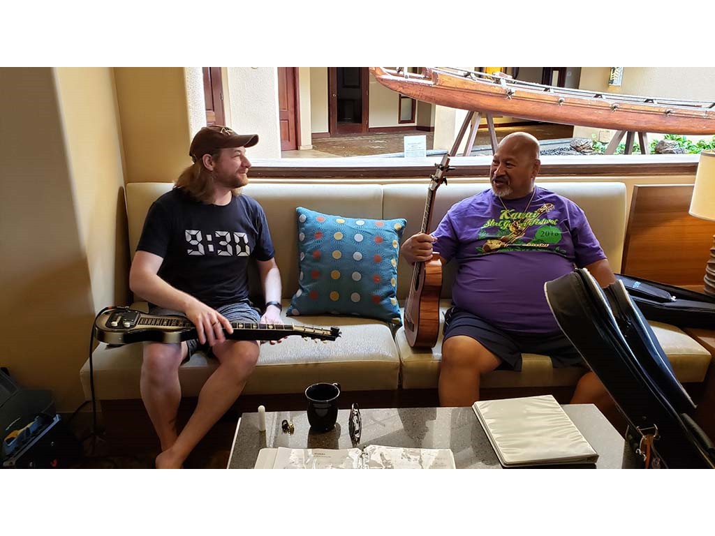 A little spare time allowed Aaron Benolkin from Anchorage, Alaska, to rehearse his open stage numbers with his backup musicians Larry Holu and Addison Ching.