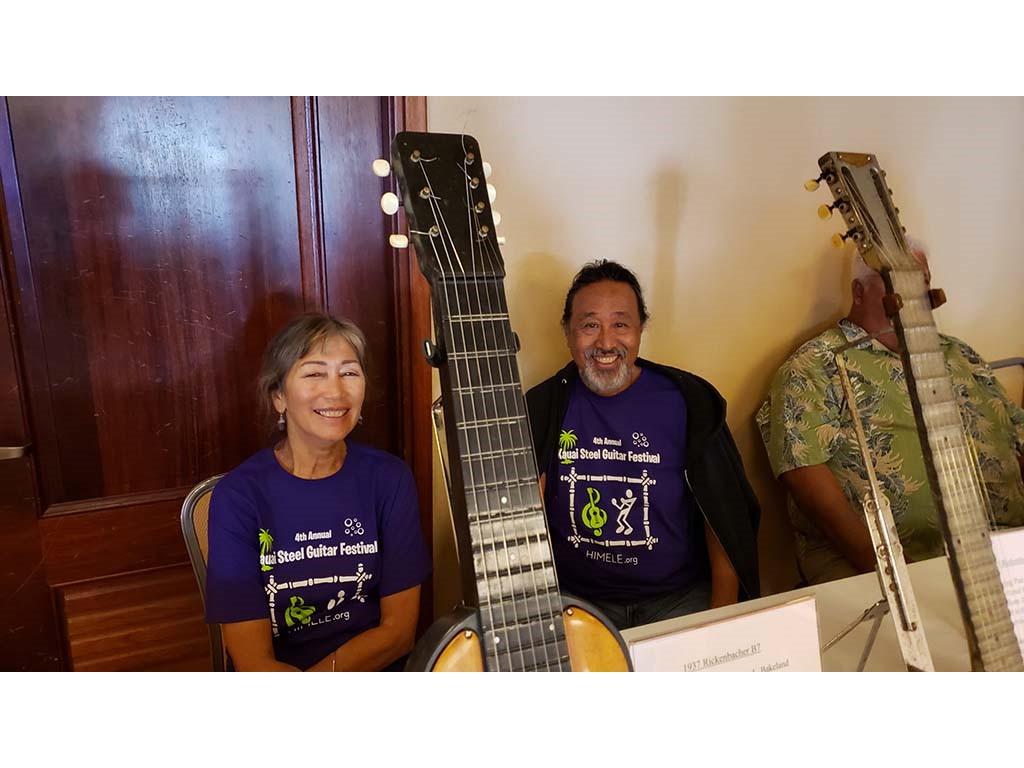 Verdeen and Geri Valdriz. Geri is repsonsible for the festival steel guitar exhibits. Photo by Addison Ching.