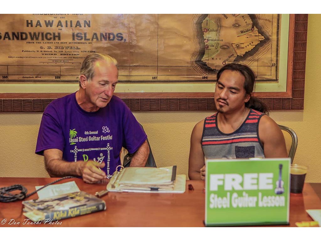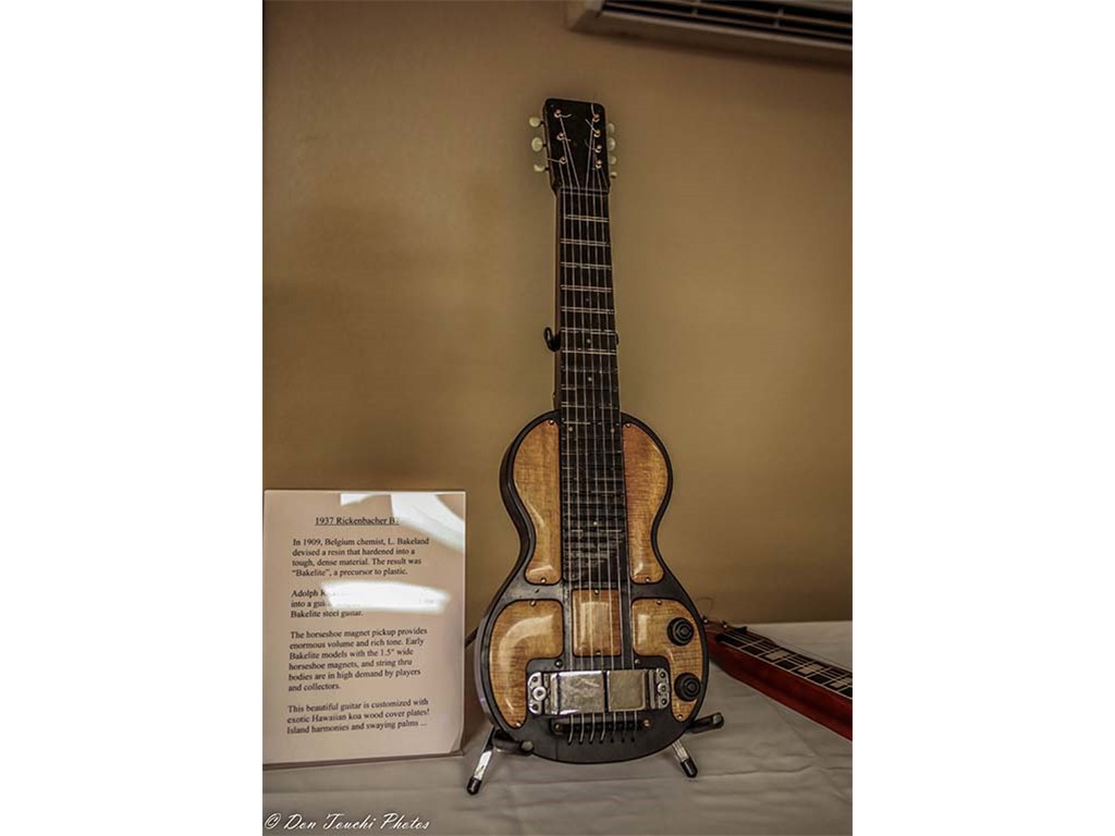 Steel guitars from the collections of Kaua'i steel guitarists Marty Curnan and Michael Soong and guitars from the collection of Geri Valdriz were on display for festival guests.