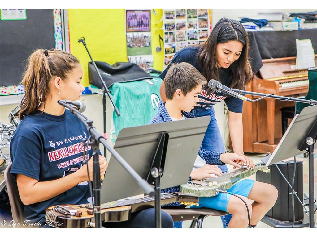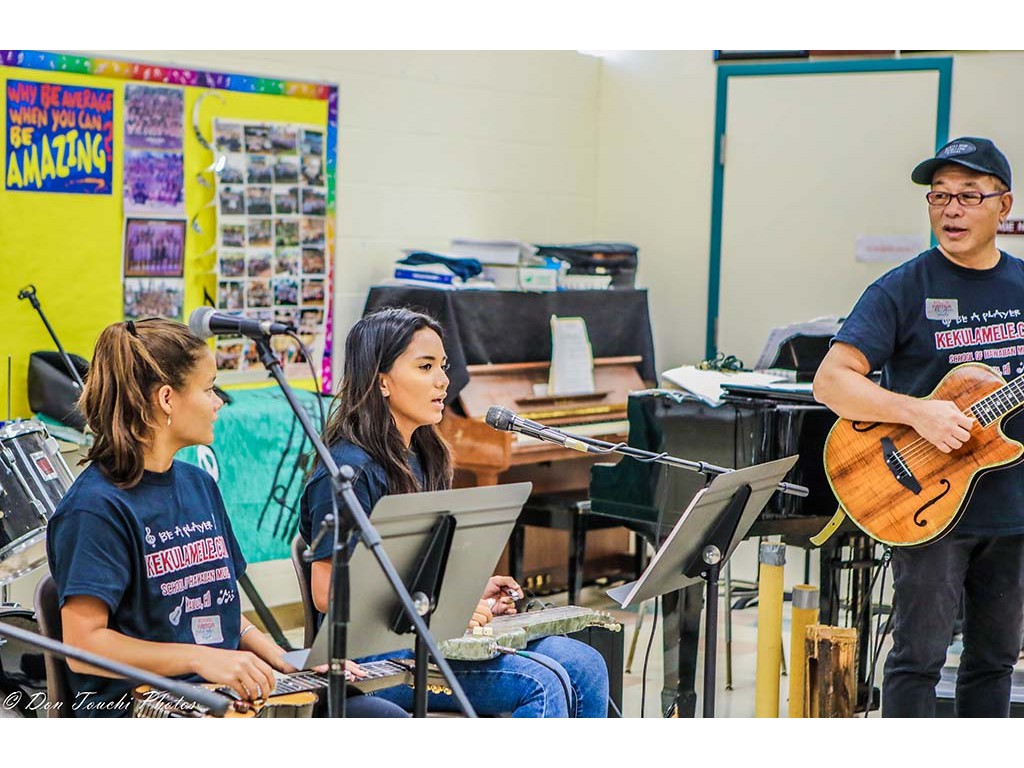The class, members of the Kapaʻa Middle School Chorus and ʻUkulele Band, was invited to play along kanikapila style.