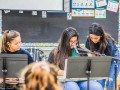 The presentation team set up in front of the class. A reflection of the class is seen in the background mirrors.