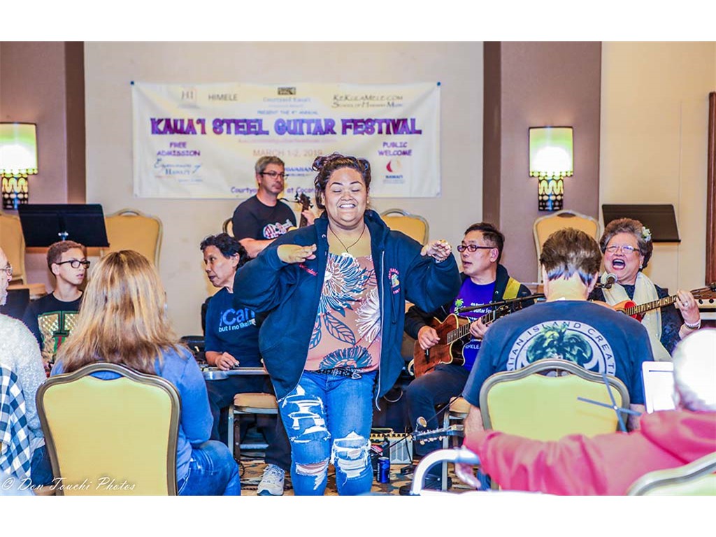 Public kanikapila jam sessions were held Friday and Saturday evenings beginning at 8:30 in the hotel's Paddle Room. Participants included featured and NextGen steel guitarists, other festival artists and musicians, Aloha Music Camp participants, community artists and musicians, and other guests.