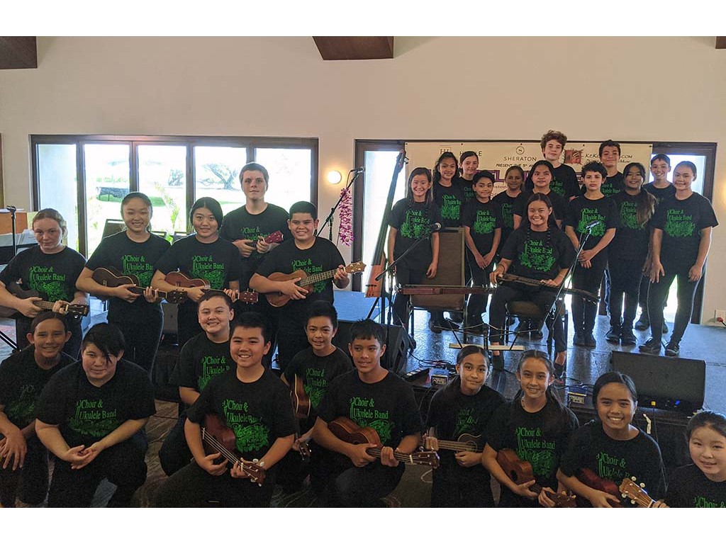 • Kapaʻa Middle School Choir and ʻUkulele Band with Tai and Joey Misailidis. Photo by Mary Lardizabal.