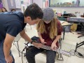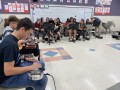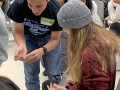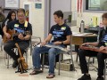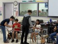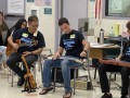 Ethan shows the students how to place the finger picks. Photo by Natan Goore.