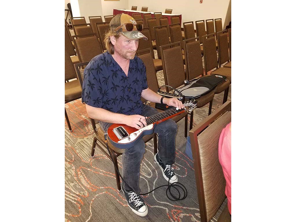 A kanikapila guest plays with Daniel Tremblay and Rusty Strange.