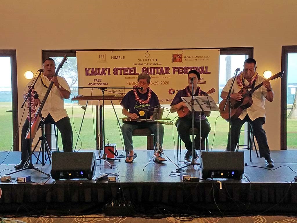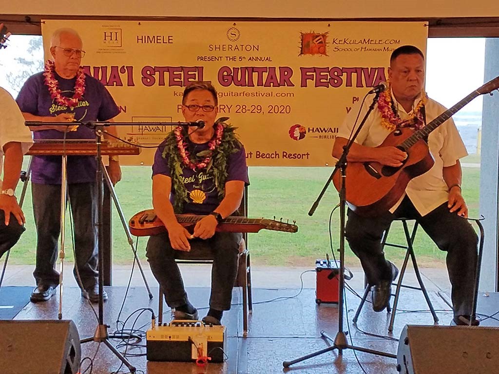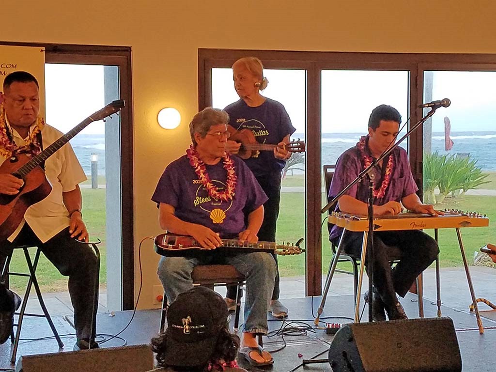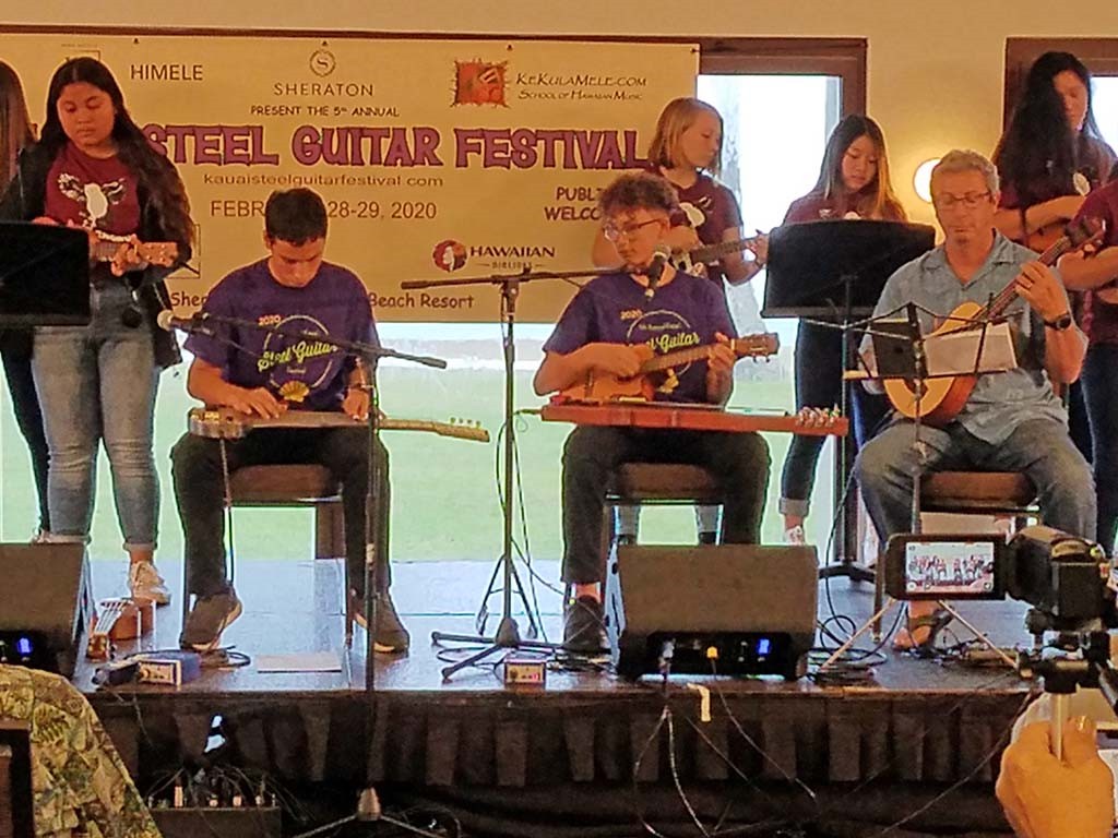 Saturday's Ho‘olaule‘a featured six steel guitarists and the Chieffess Kamakahelei Middle School Chorus and ‘Ukulele Band and Kapa‘a Middle School Choir and ‘Ukulele Band performing with NextGen steel guitarists. The Ho‘olaule‘a concluded with a finale featuring all steel guitarists playing at the same time.