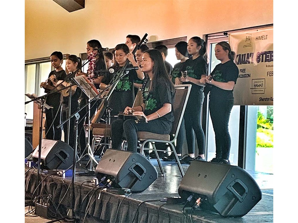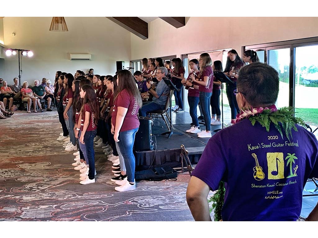 Saturday's Ho‘olaule‘a featured six steel guitarists and the Chieffess Kamakahelei Middle School Chorus and ‘Ukulele Band and Kapa‘a Middle School Choir and ‘Ukulele Band performing with NextGen steel guitarists. The Ho‘olaule‘a concluded with a finale featuring all steel guitarists playing at the same time.