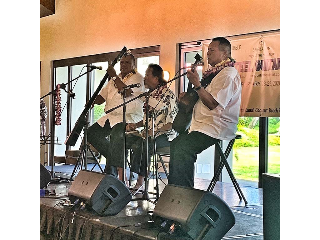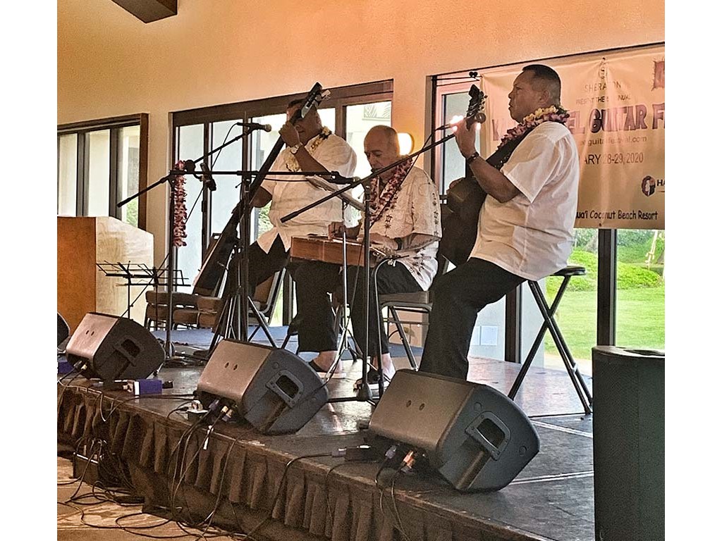Featured steel guitarist Geri Valdriz with Adam and Kaipo Asing.