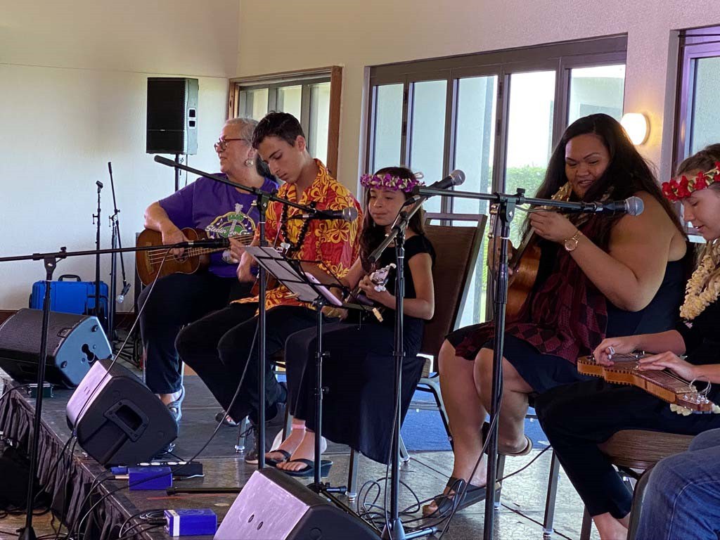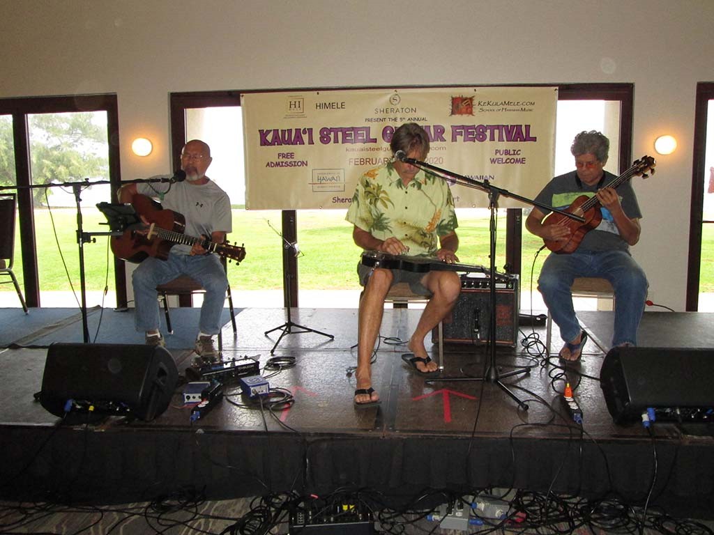 Aunty Manu Lono, Mark Gaponoff, and Greg Sardinha. Mark also played his fiddle. Photo by Kris Oka.