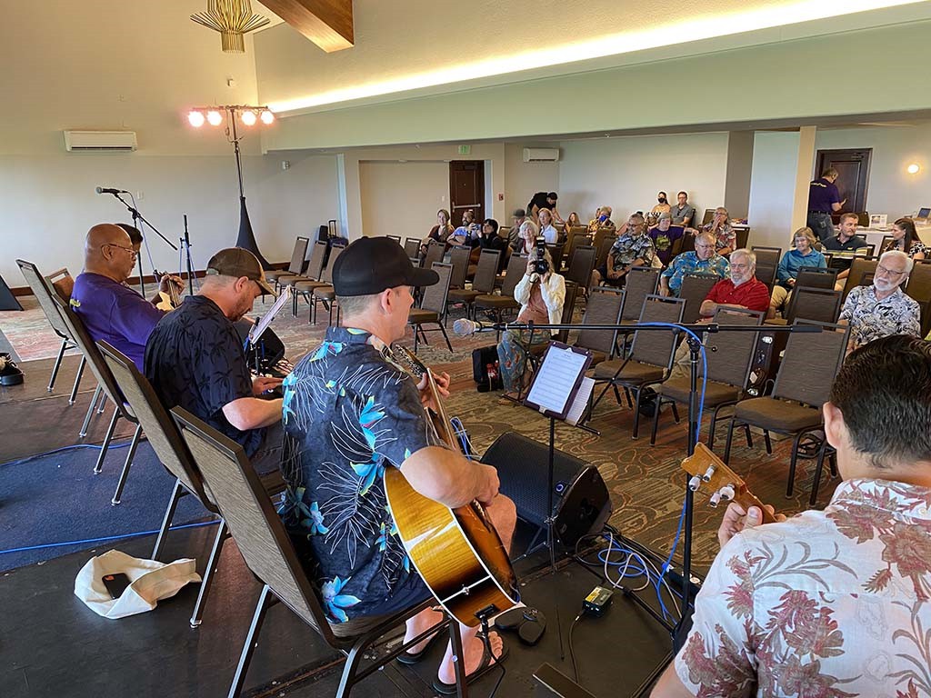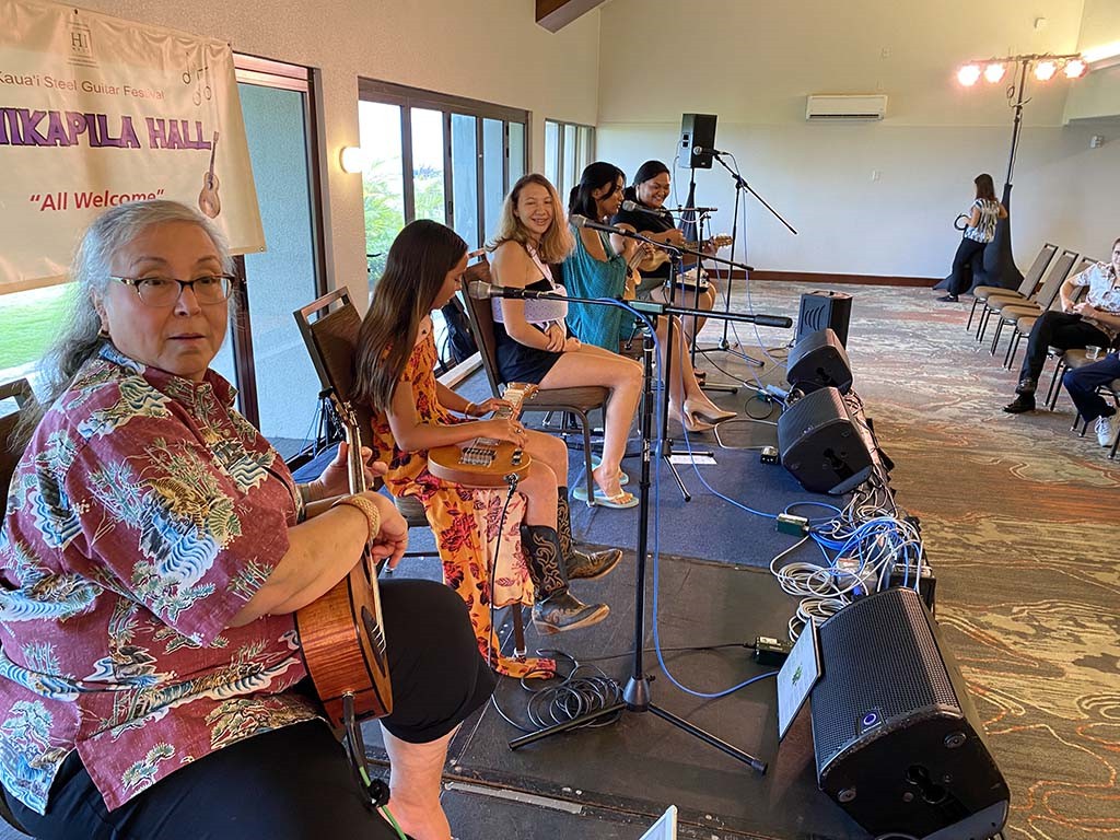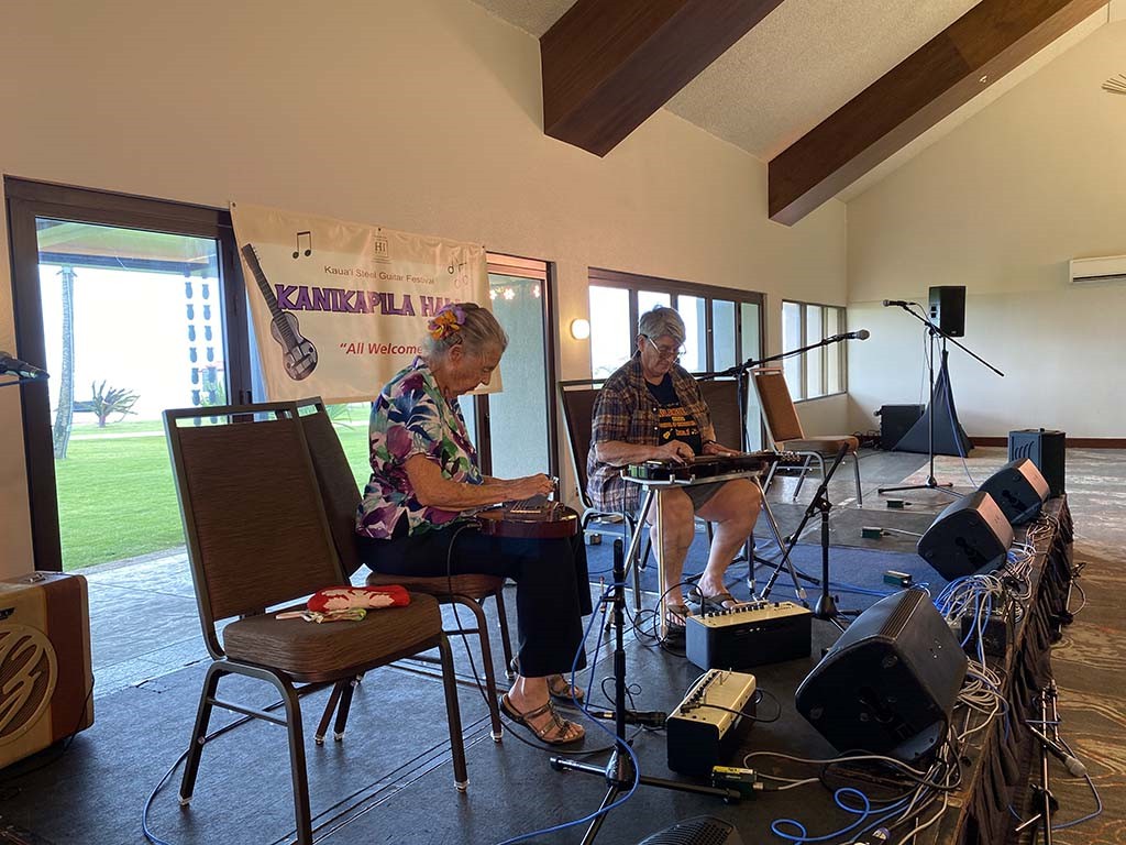 Open stage performers included Mark Gaponoff, Joe Stewart, Barbara Bones and Mary Newdorffer, Vickie Van Fechtmann, Rhonda Murotake with guest steel guitarist Dan Villani, Aaron Benolkin, Ki‘ileiah Jeffries and Heu‘i Bandmann. Ke Kula Mele Hawai‘i NextGen steel guitarists also performed.