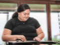 Kiʻileiah Jeffries with Heuʻi Bandmann and Mālie Lyman.