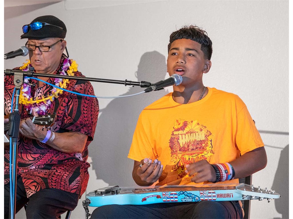 NextGen steel guitarist Tai Misailidis with Kaipo Asing.