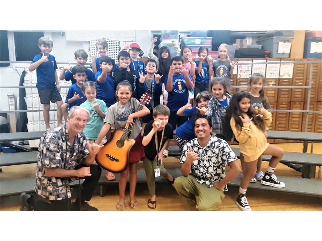 Daniel Tremblay visited Lihu‘e's Island School, a private co-educational college-preparatory school in Lihue, Hawaii. Students enjoyed the steel guitar introduction and were shown a guitar that was converted by Dan to become a steel guitar. That guitar was presented to the school.