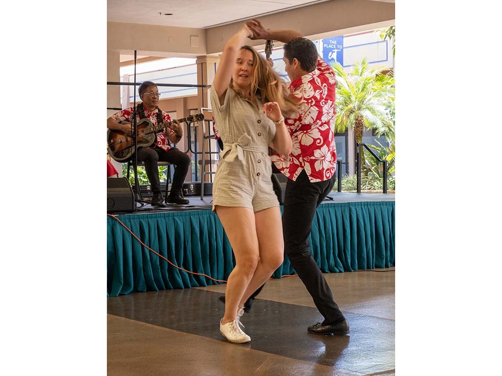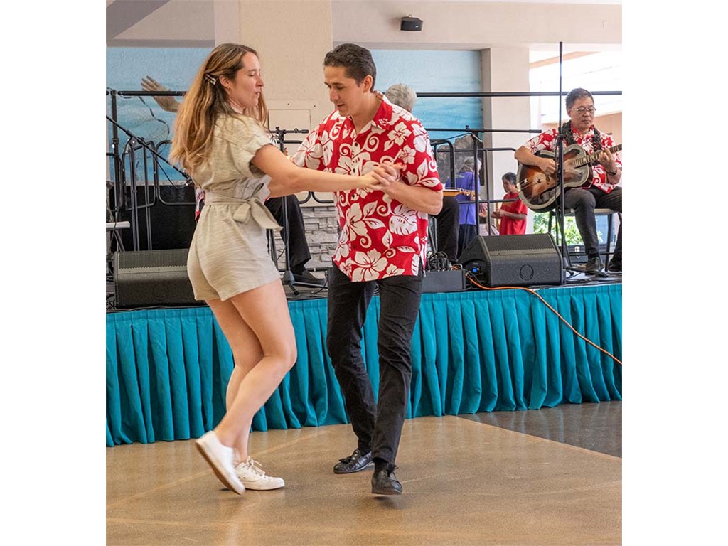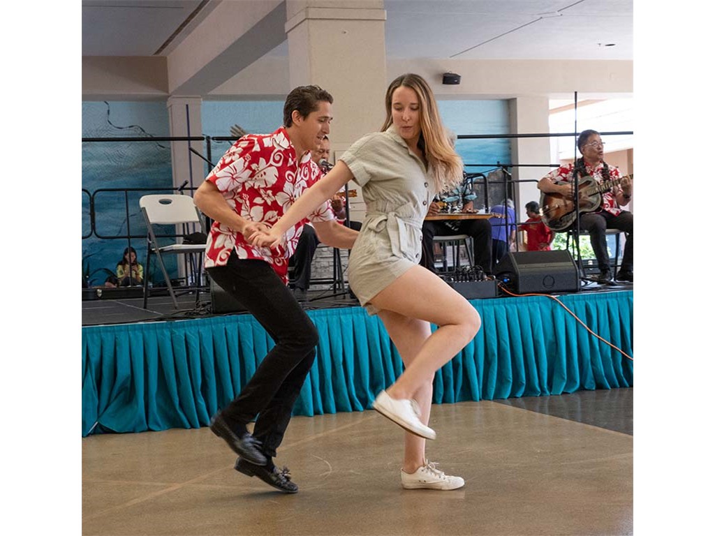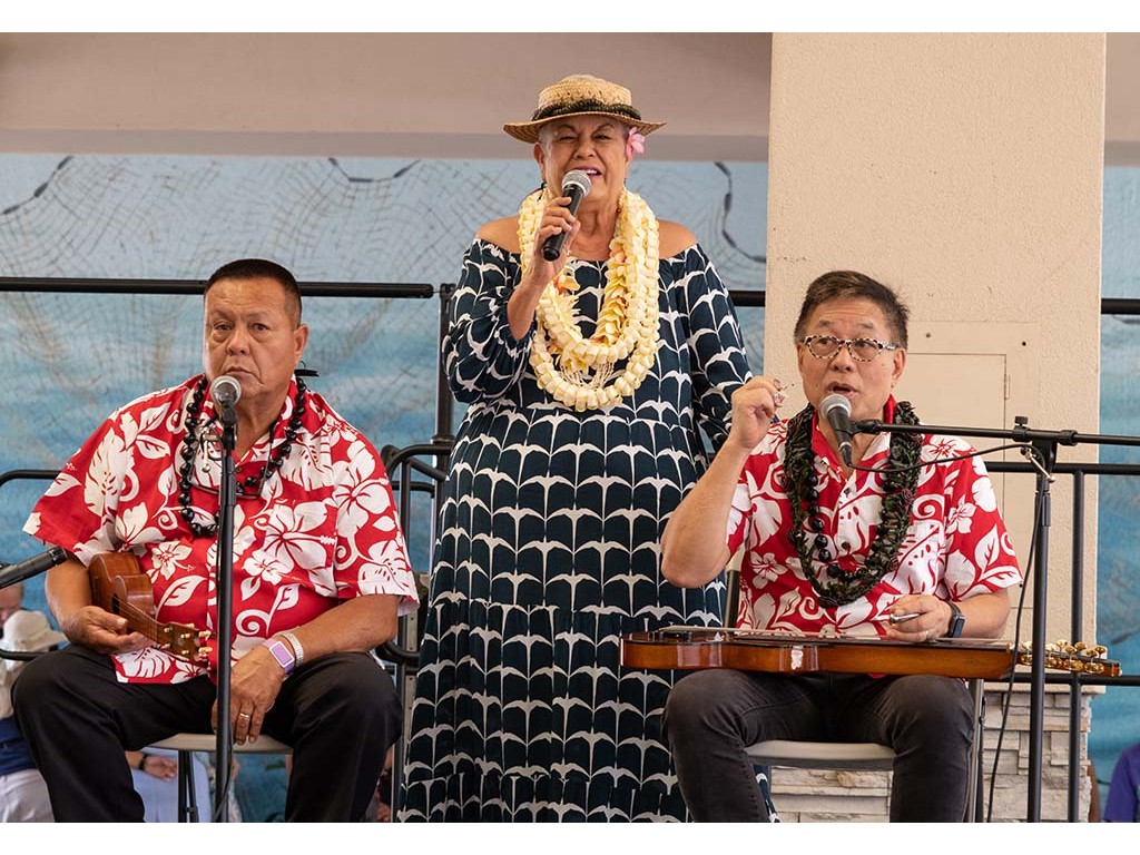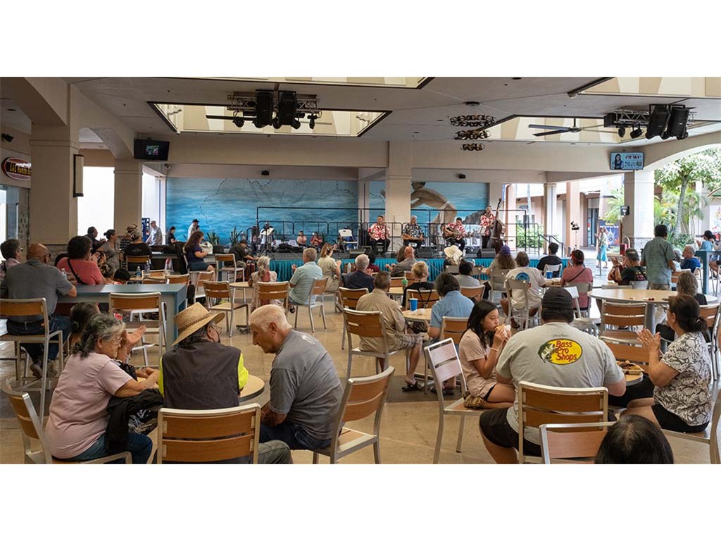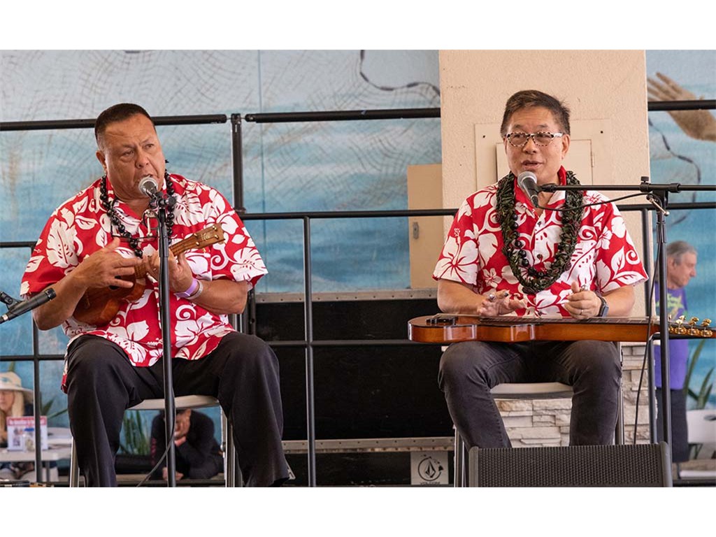 The Kukui Grove Center festival featured steel guitarists Geronimo "Geri" Valdriz, Greg Sardinha, NextGen steel guitarists Makamae Lyu-Napoleon, Isabella Bertlemann, Enosa Lyman, Tai Misailidis and Joey Misailidis, steel guitarists Sebastian Mūller, Mālie Lyman, Bobby Ingano with guest artist Heu‘i Bandmann, and Alan Akaka.