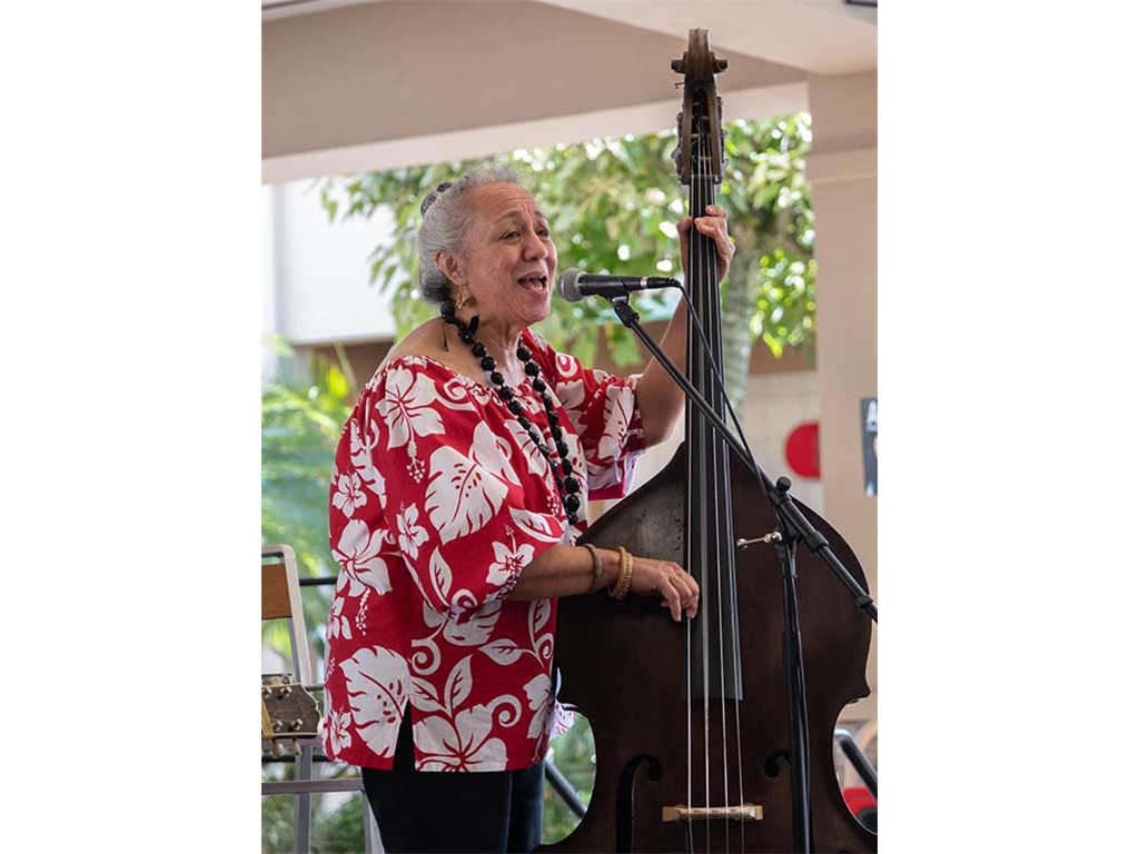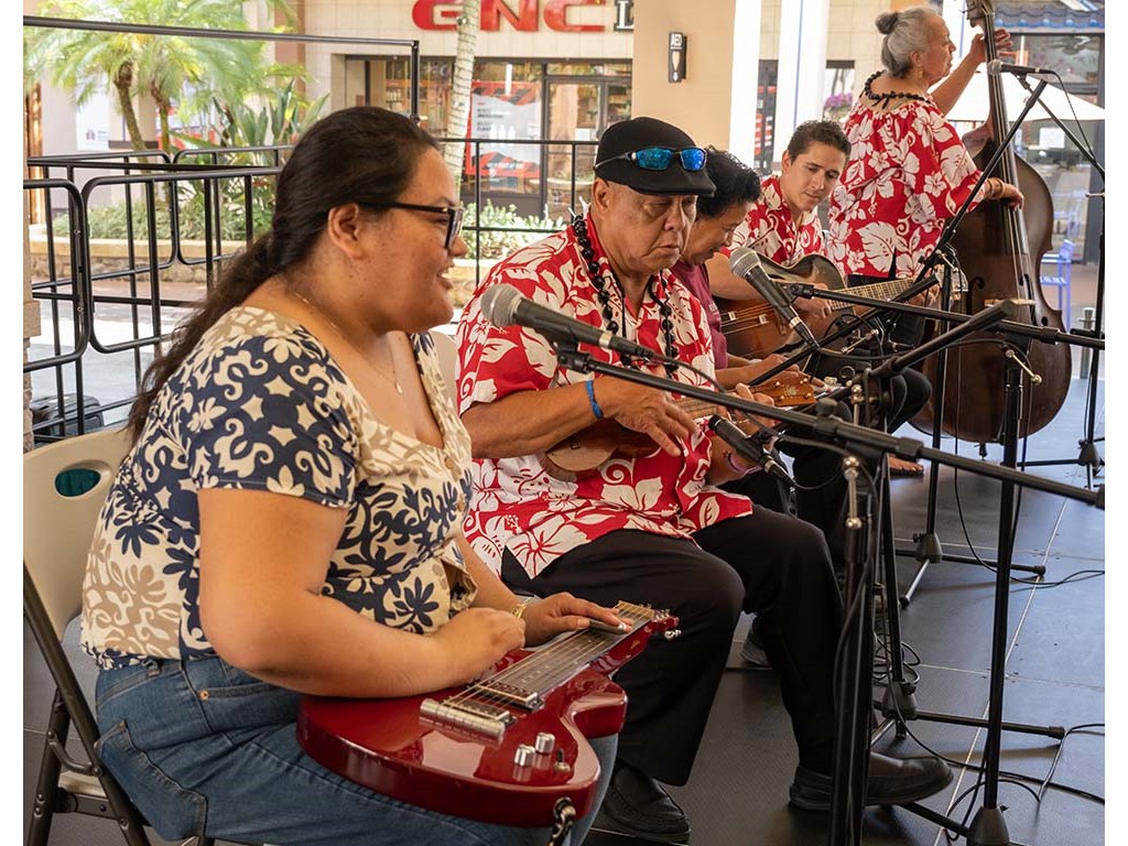 The Kukui Grove Center festival featured steel guitarists Geronimo "Geri" Valdriz, Greg Sardinha, NextGen steel guitarists Makamae Lyu-Napoleon, Isabella Bertlemann, Enosa Lyman, Tai Misailidis and Joey Misailidis, steel guitarists Sebastian Mūller, Mālie Lyman, Bobby Ingano with guest artist Heu‘i Bandmann, and Alan Akaka.
