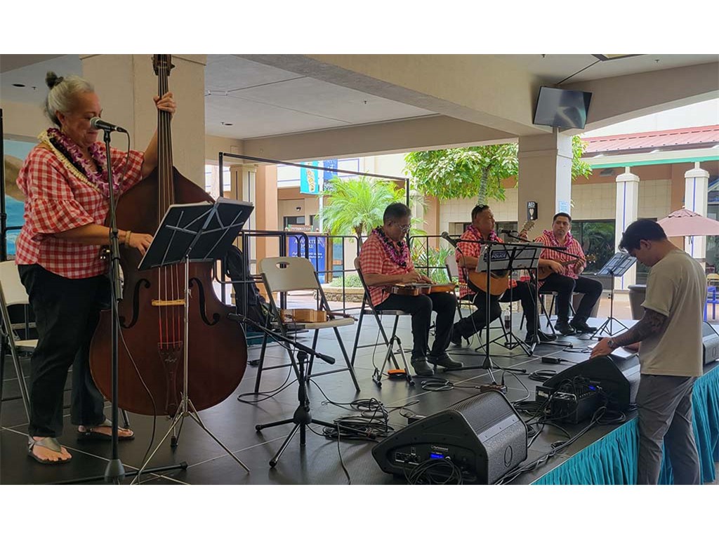 Kukui Grove Center sound check with Helene Woodward, Alan Akaka, Kaipo Asing, and Kaipo Lindsey.