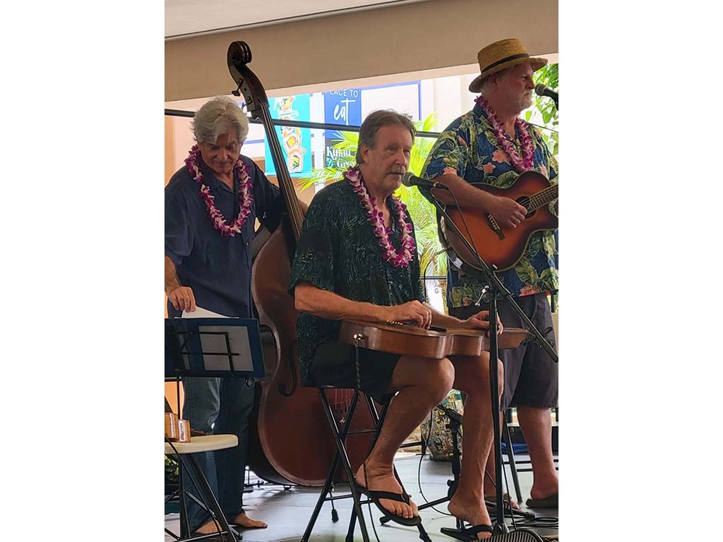 Featured steel guitarist Jess Montgomery from Kauaʻi with Larry Nager on upright bass and Sam Kitsch on guitar.