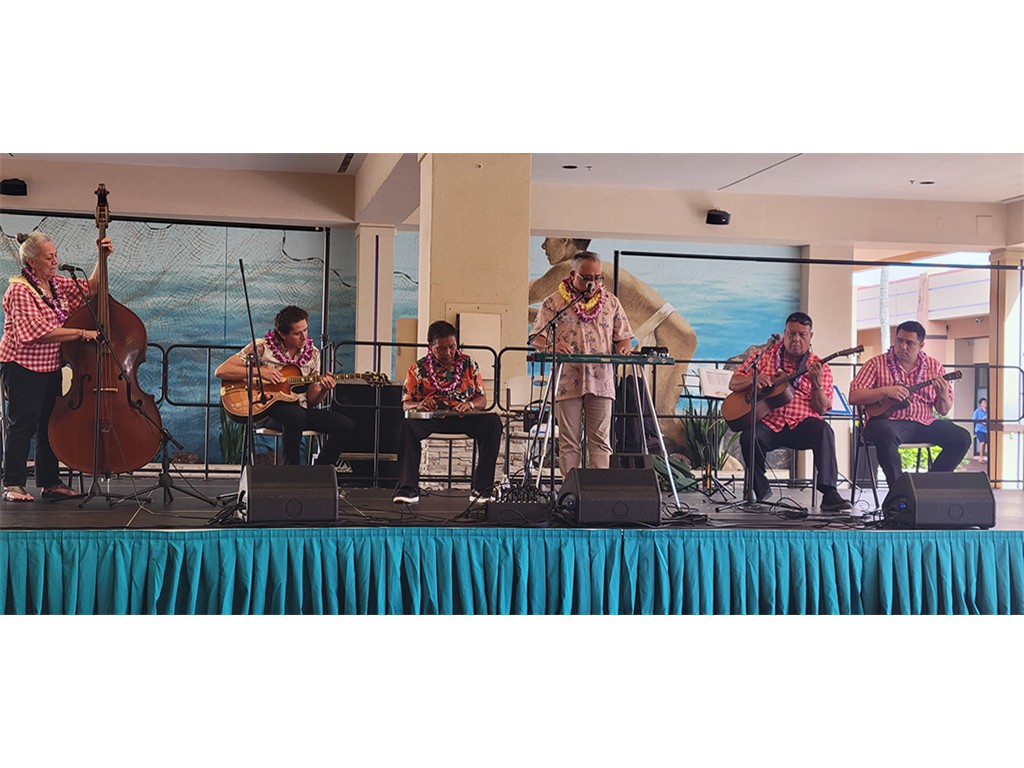Featured steel guitarist Alan Akaka with Helene Woodward, Kaipo Asing, and Kaipo Lindsey.