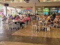 The performance venue is adjacent to a food court, providing ample seating for guests to eat and enjoy the festival.
